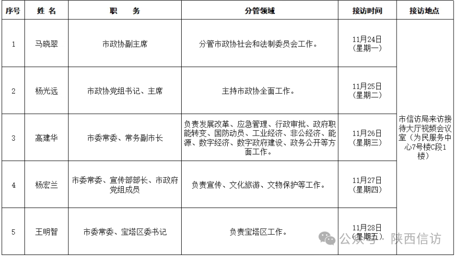 3.接访安排如因工作冲突等原因调整,具体接访领导以实际调整为准。