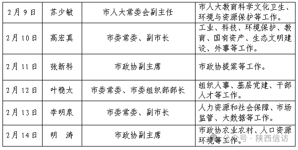 为进一步畅通信访渠道,方便人民群众及时就地反映诉求、解决问题,现将2月9日—2月14日宝鸡市市级领导公开接访安排公布如下: